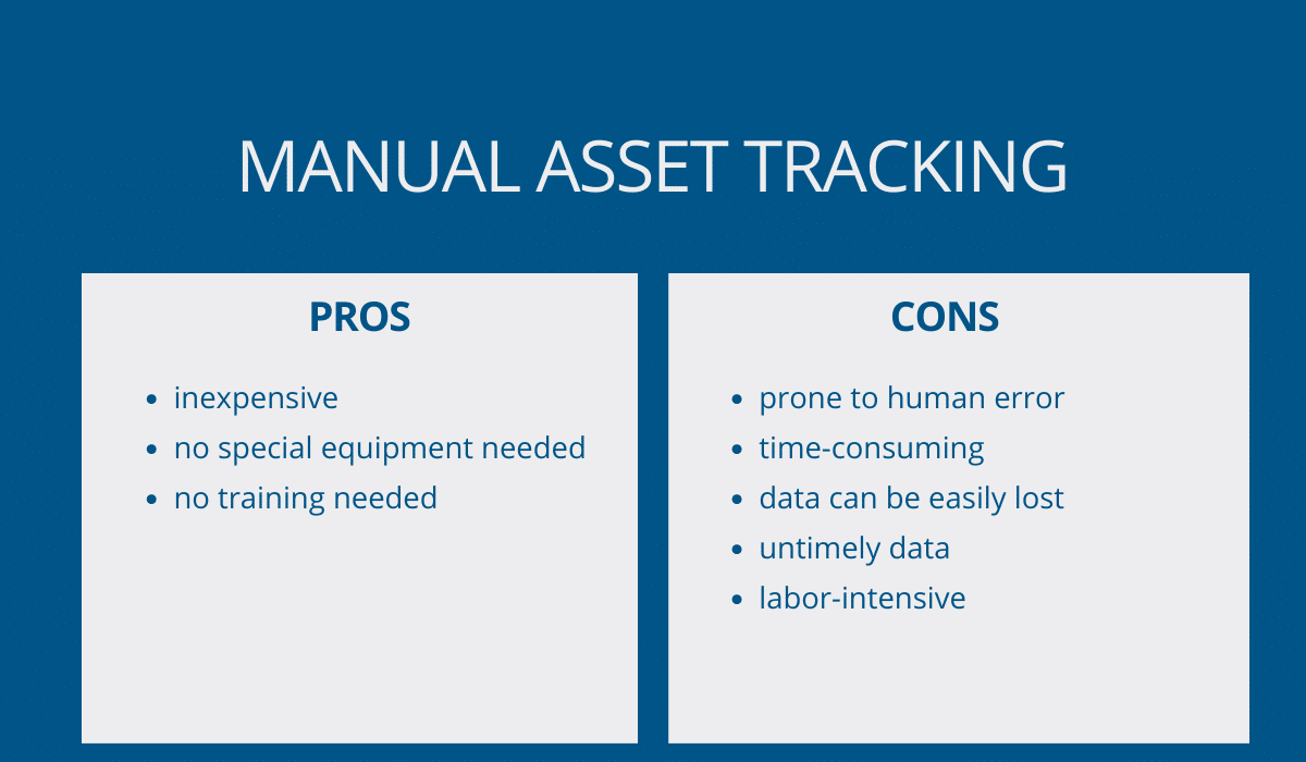 Although inexpensive and easy to master, manual asset tracking is inefficient and prone to human error.