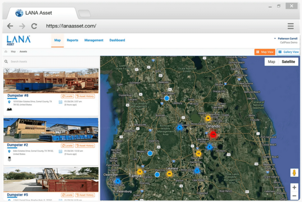 When it comes to tracking dumpsters, their asset tracking software, LANA Asset, is a solid option.
