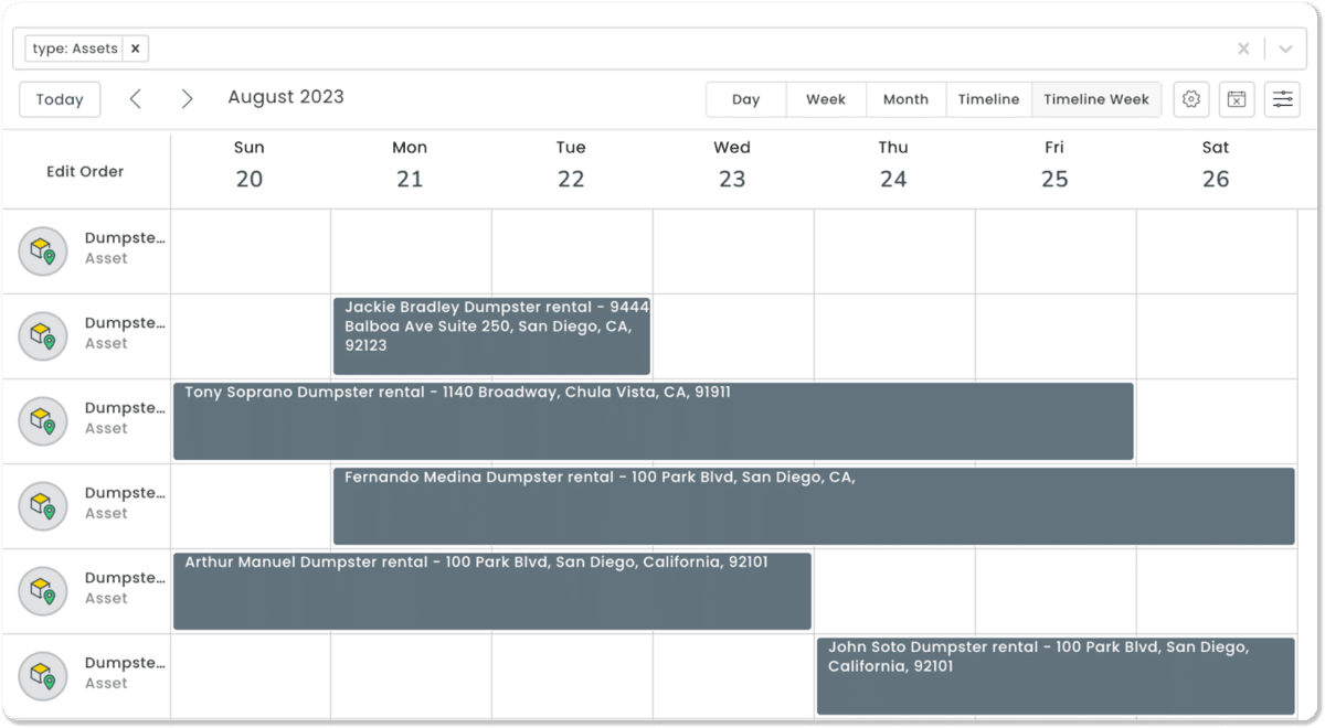 This software lets you monitor every dumpster across your projects or rentals, so you know exactly where they are and when they need to be emptied or swapped out.