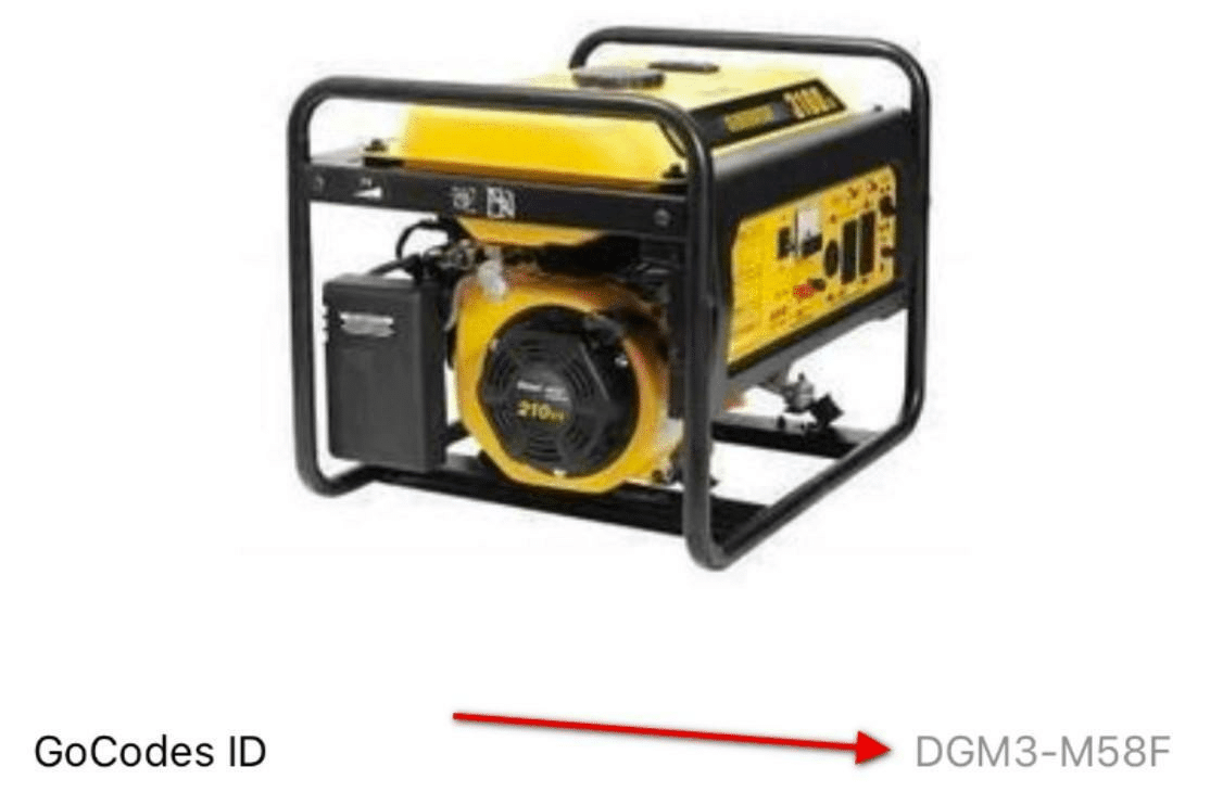 It is also a good idea to include a unique code for each item. Here is an example of a GoCodes Asset Tracking ID generated for a fixed asset: