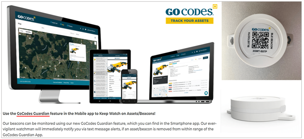 It’s worth noting that GoCodes Asset Tracking combines its Bluetooth beacons with patented QR code asset tags, also used for tracking, protecting, and managing tools, equipment, and inventory.