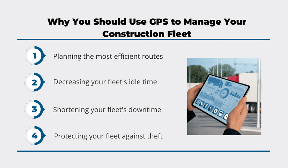 Moreover, the GPS tracking of these assets brings construction companies the most benefits, such as navigation/route optimization, fuel consumption and driver behavior monitoring, as well as theft prevention.