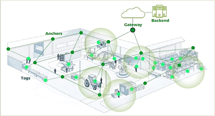 Anchors receive the signals and deliver data to the central gateway, which sends it to the tracking software’s database for storage, analysis, and user-friendly presentation.