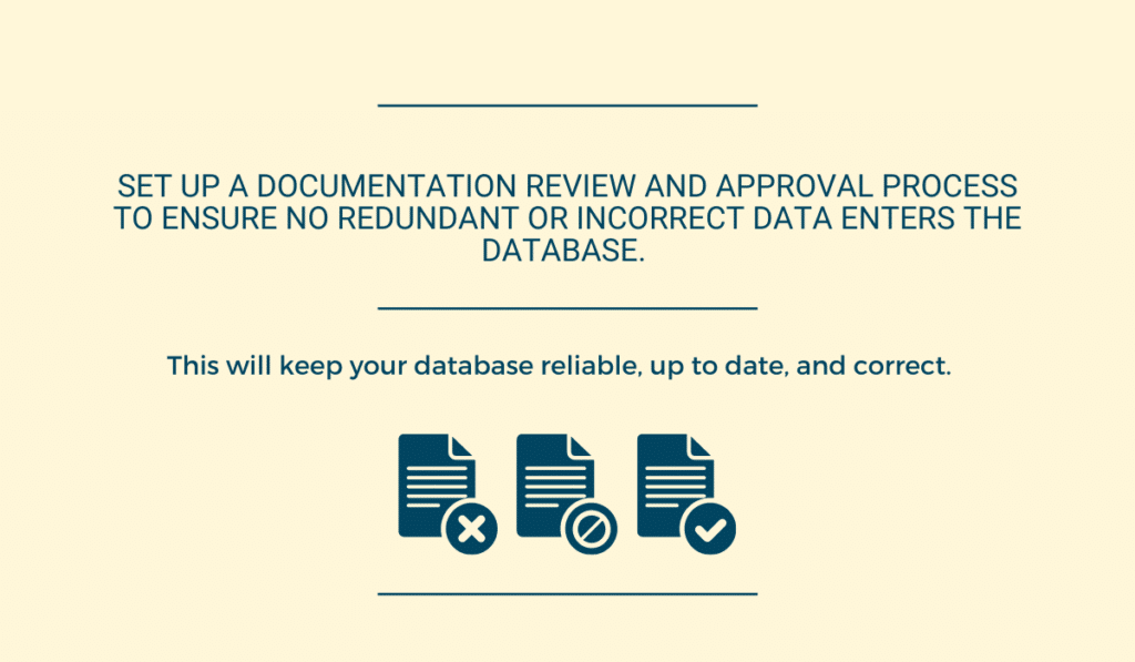 Their task would be approving each change to documentation or each new addition. You’d then be sure that everything in your database is updated and reliable.