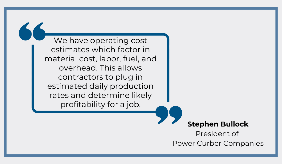 Stephen Bullock, president of Power Curber Companies, advocates for this method as a powerful tool to assess the profitability of a machine.
