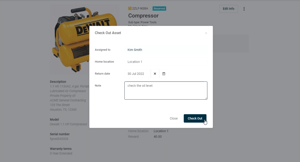 First, the check-out system helps with scheduling because it gives insight into when a particular asset is being used so you can avoid work conflicts by planning maintenance during downtime.