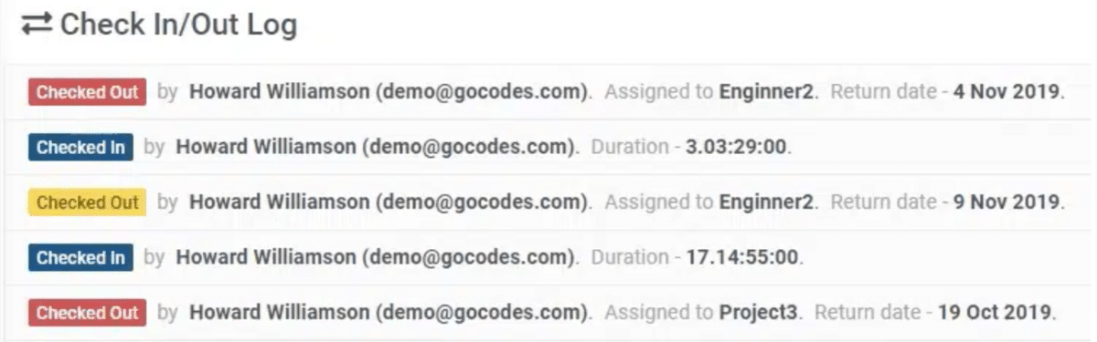 You can also go back and look at the check-in/check-out log to see the history of an asset’s usage.