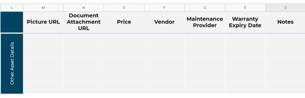 All of this information is a starting point. Other data is needed in order to make the most of an asset tracking spreadsheet.