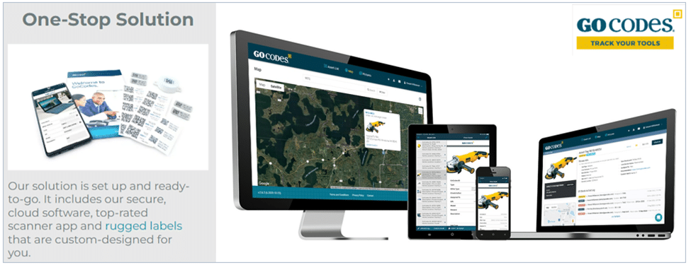 GoCodes Asset Tracking aptly combines cloud software with in-app QR code scanning, and equipment tracking tags (GPS-enabled QR codes), resulting in an affordable, ready-to-go solution.