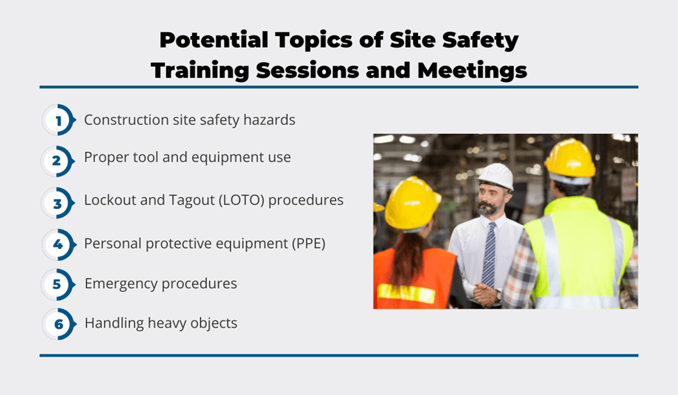 For example, a manager can organize safety training sessions or meetings where they’ll cover various safety aspects.