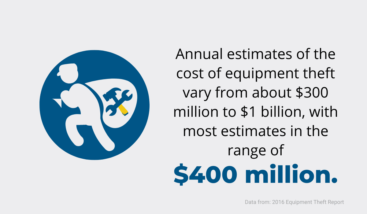 According to the National Equipment Register’s latest available Annual Theft Report, the annual estimate of the cost of construction equipment theft is in the range of $400 million.