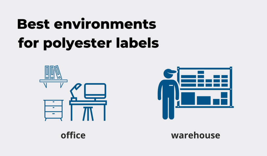 The ideal environment for such labels consists of indoor spaces, such as your offices or the warehouse. They are typically used for paper files, office inventory, or other types of indoor equipment.