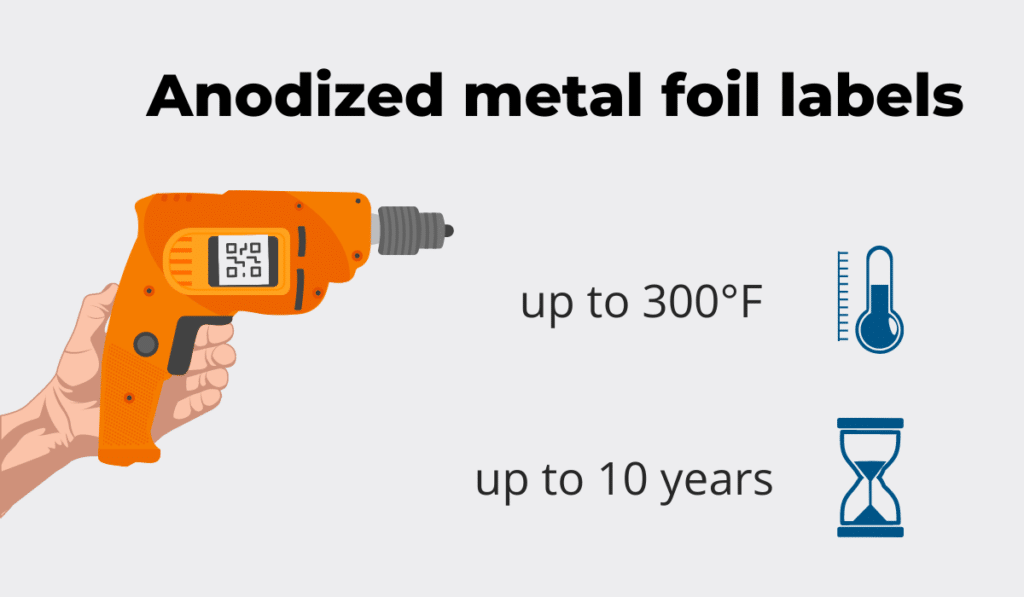 You can use anodized metal foil labels at up to 300°F in temperature. Anything over that can compromise legibility and loosen the tag.