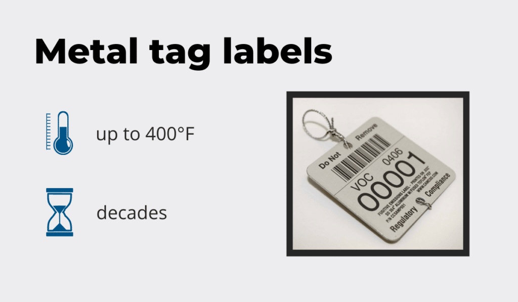 Metal tags can withstand temperatures of up to 400°F, and even beyond. However, at 700°F, the readability of metal labels becomes limited.