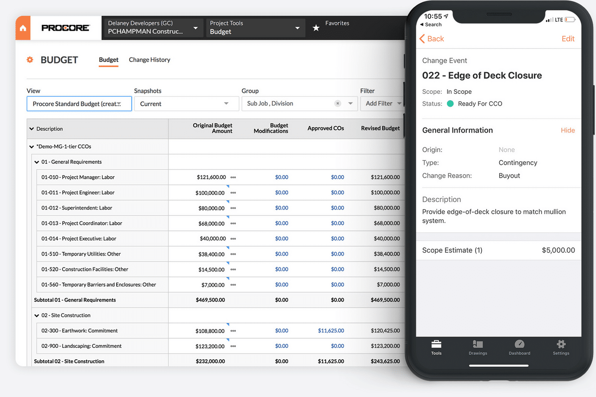 Procore empowers you to effectively track and manage your budgets, customize how you organize and report project financial data, and automatically update budgets with labor and production data for better financial insights.