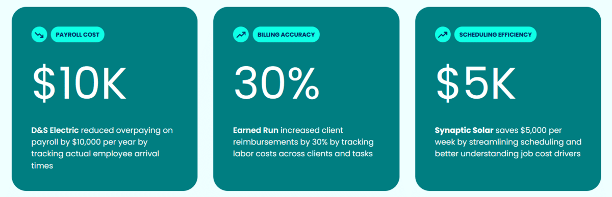 The app provides real-time time cards for each employee, making tracking labor hours and overtime effortless.