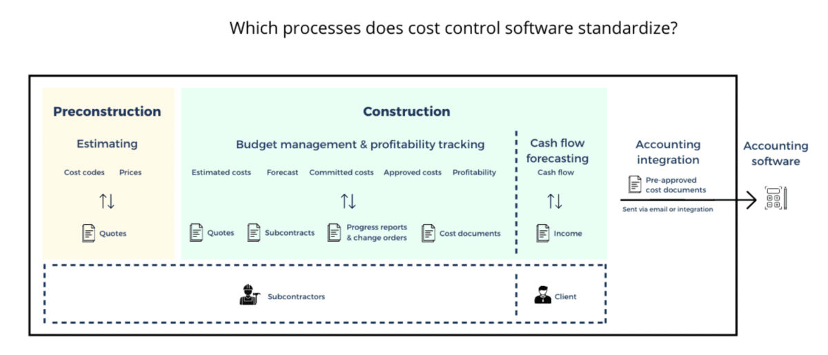 This includes controlling change orders, managing payments and pay applications, streamlining expenses through integration with accounting systems, and improving cost forecasting accuracy.