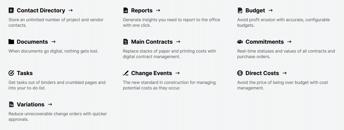 While Procore offers a host of benefits for effective project and cost management (which you can see in the image above), some users have noted drawbacks, particularly in the scheduling tools.
