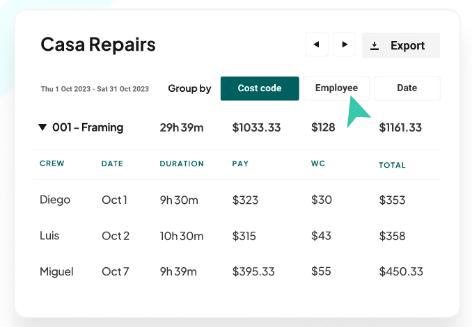 Plus, Workyard offers a live view of project costs, allowing you to break down expenses by employee or date and bill clients with GPS precision.