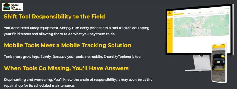 As we’ve indicated, ShareMyToolbox can help you schedule tool maintenance, efficiently conduct field audits, create damage and costing reports, and track tools by kits.