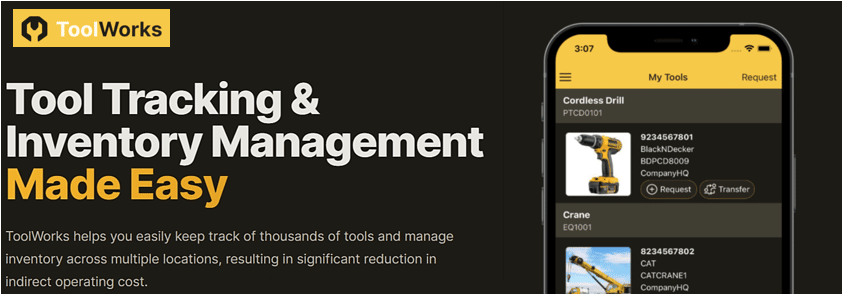 Other than now well-known standard tracking features, ToolWorks focuses on enabling managers and workers to order tools while on-site in an experience similar to online shopping.