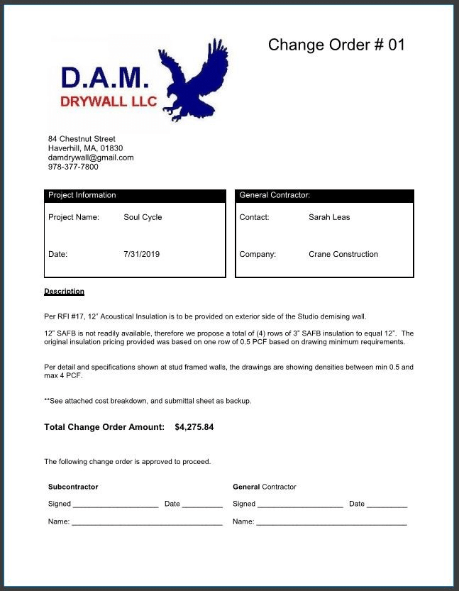 Now that you’re aware of the basic elements of a change order, here is how it looks in practice.
