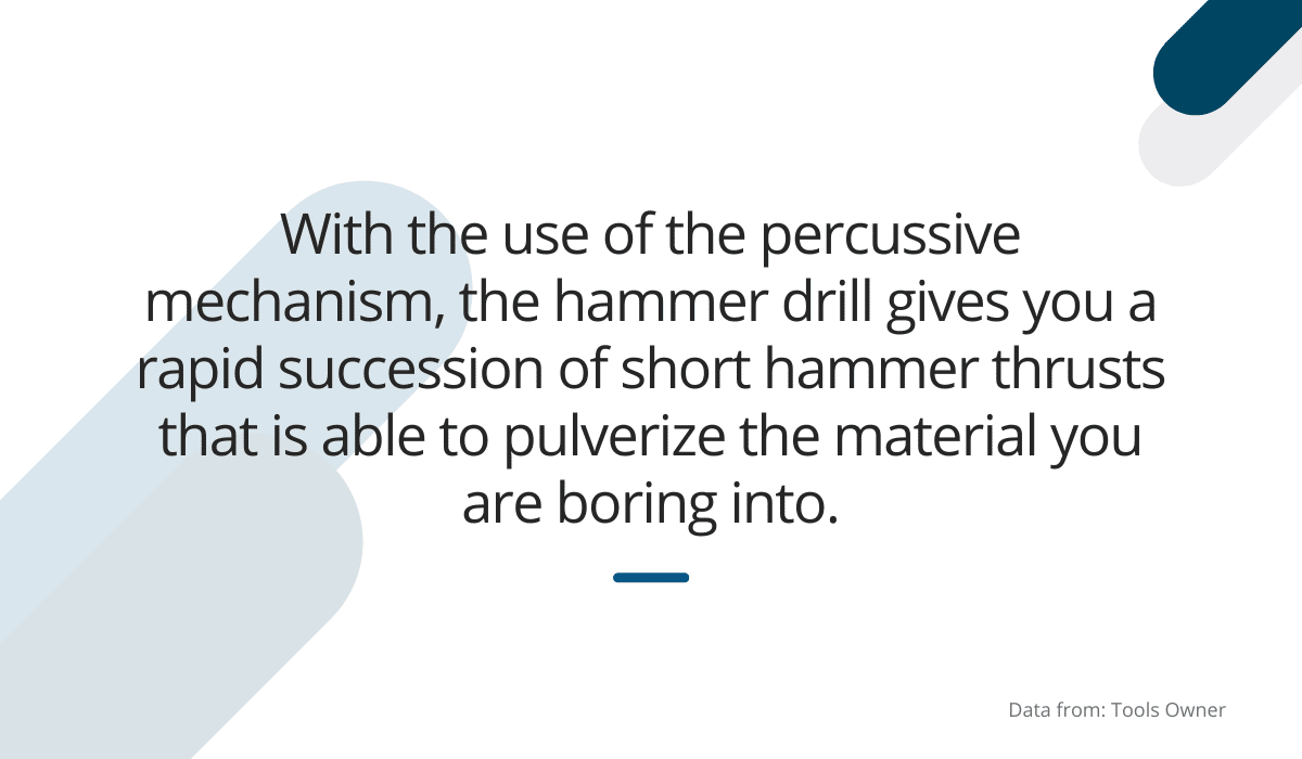 However, a hammer drill consists of two sets of toothed gears that interact with each other to create a hammering motion while rotating the drill bit.