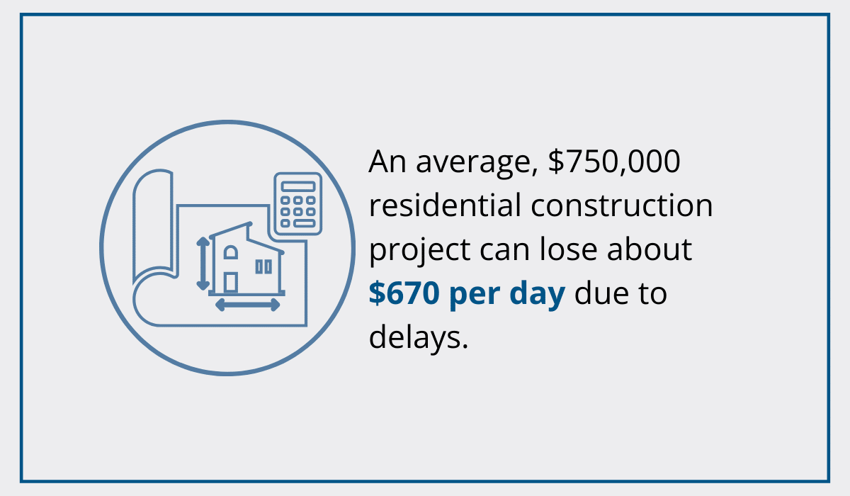 A survey commissioned by the Association of Professional Builders really puts things into perspective, revealing that an average residential project valued at $750,000 can lose approximately $670 per day due to delays.
