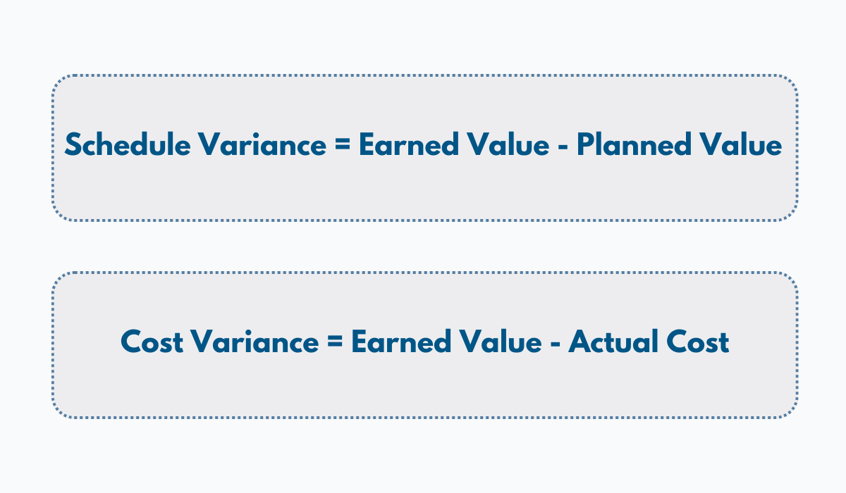 Now, let’s calculate the schedule and cost variances, beginning with the schedule variance: