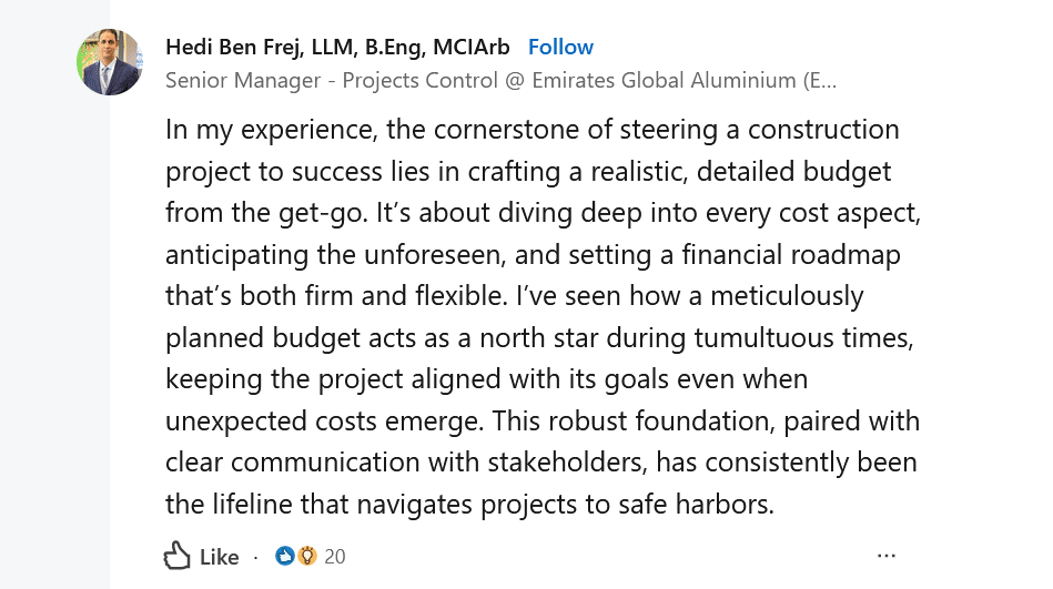 Even in the face of unexpected costs or unforeseen challenges, as Hedi Ben Frej, senior project control manager at Emirates Global Aluminium, points out: