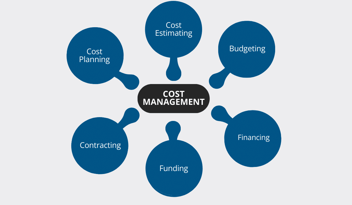 Cost management involves estimating, controlling, and monitoring all financial processes related to construction work on a specific project.