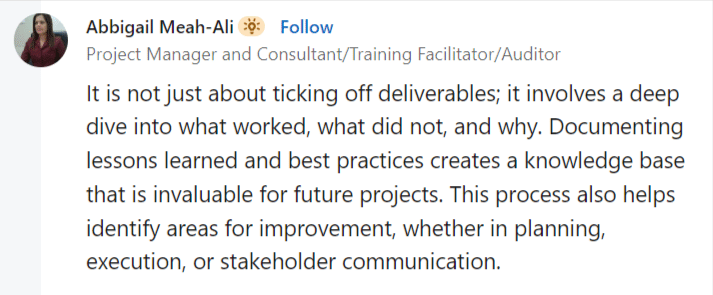 Abbigail Meah-Ali, a project manager, elaborates on this: