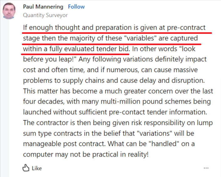 The below statement made by a quantity surveyor testifies to that.