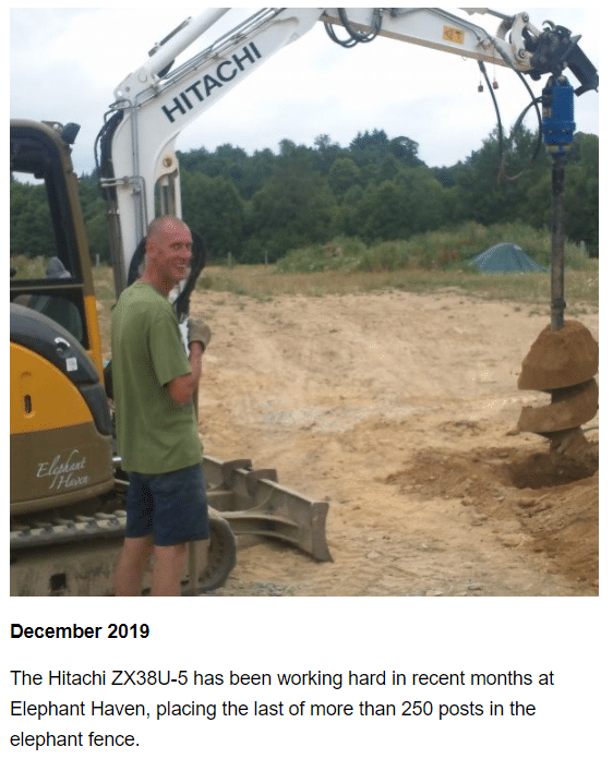 Here’s an example of how a donation can do wonders for worthy causes. Hitachi donated a used mini excavator to Elephant Haven, a rehabilitation center in France for elephants from zoos and circuses.