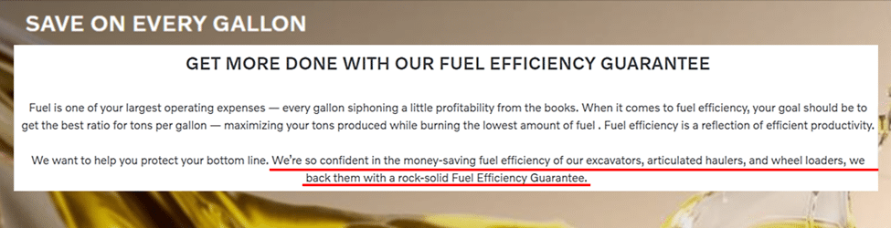 Given the share of fuel expenses in the equipment’s operating costs, some manufacturers like Volvo offer a fuel efficiency guarantee for their machinery.
