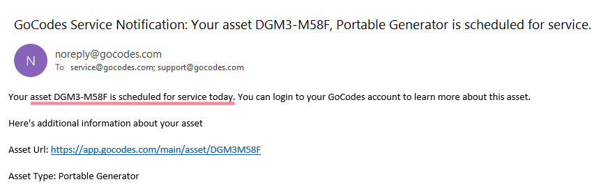 Aside from offering a wealth of data, construction companies using GoCodes Asset Tracking can easily schedule maintenance and receive scheduled service notifications via email.