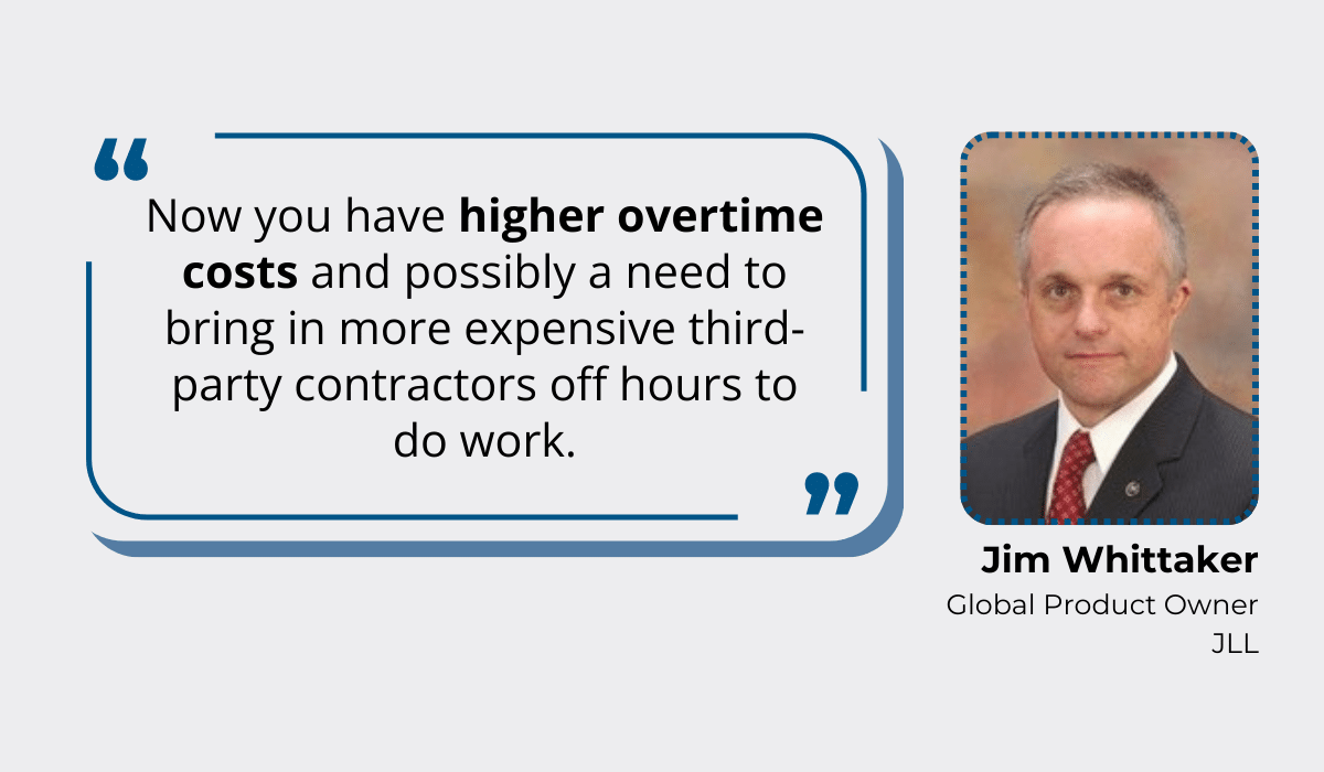 Global Product Owner at JLL, Jim Whittaker, emphasizes that the costs of unplanned or reactive maintenance go beyond just equipment and into labor.