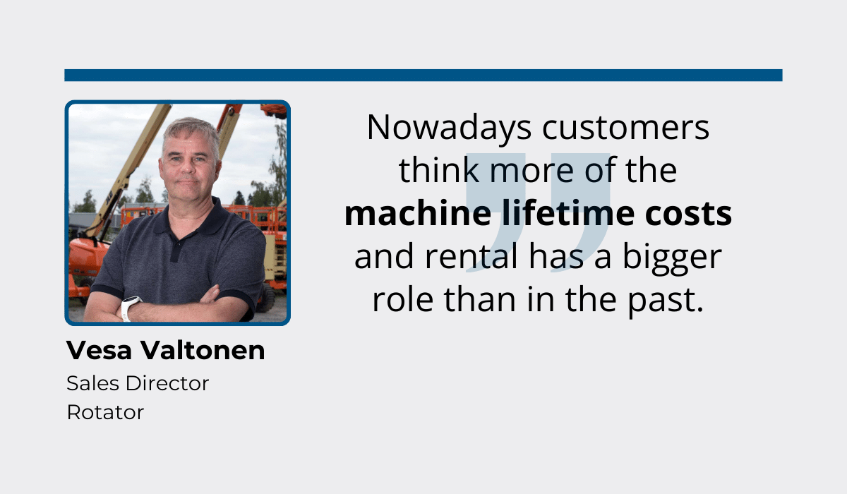 Vesa Valtonen, Sales Director of Finland’s equipment dealer giant, Rotator, explains that this shift in perception actually helped open up the floor for the rental business.