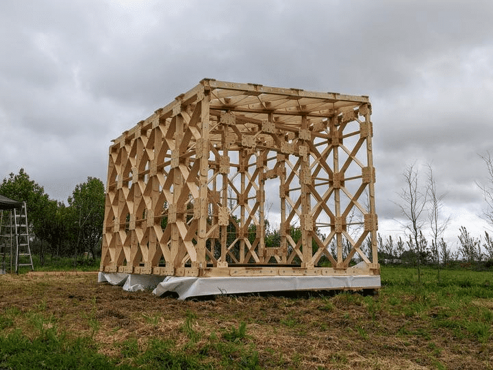 That’s how a diagrid structural system manufactured out of plywood components was born.