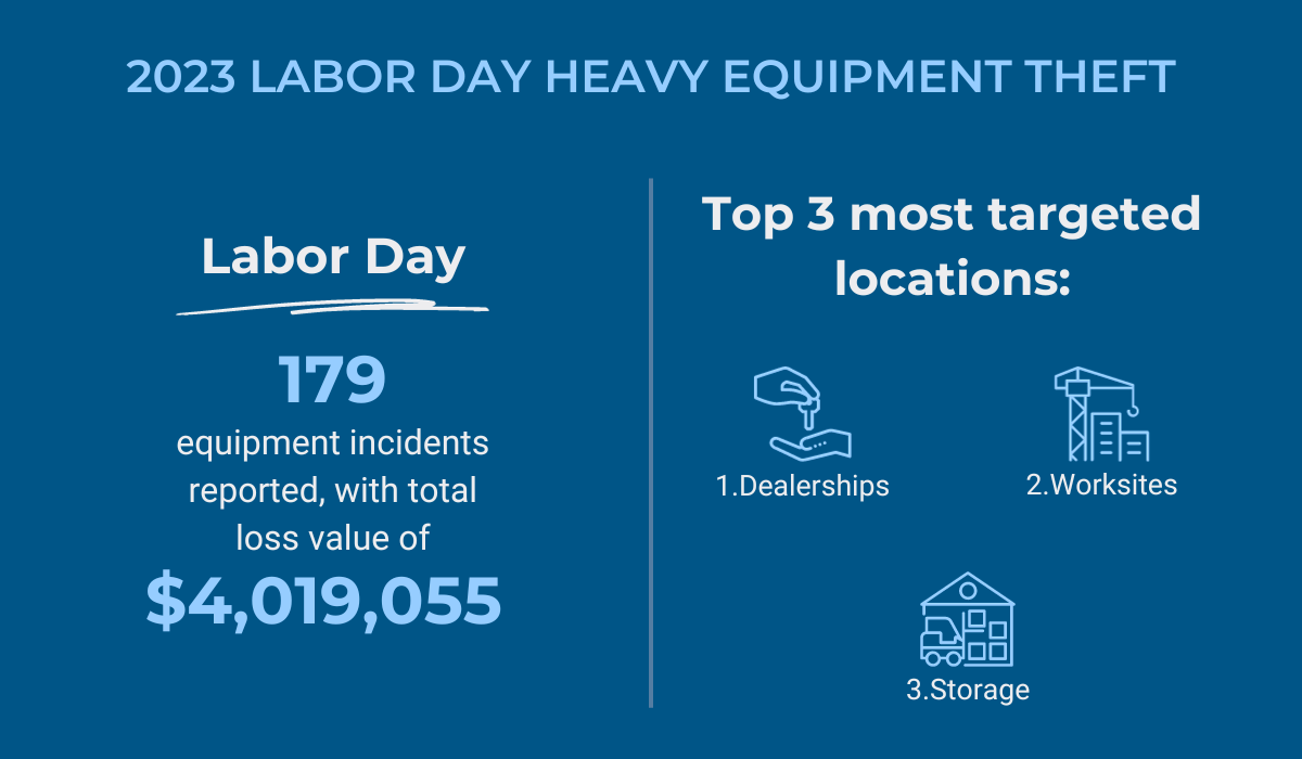 The most targeted locations? Dealerships, worksites, and storage facilities.