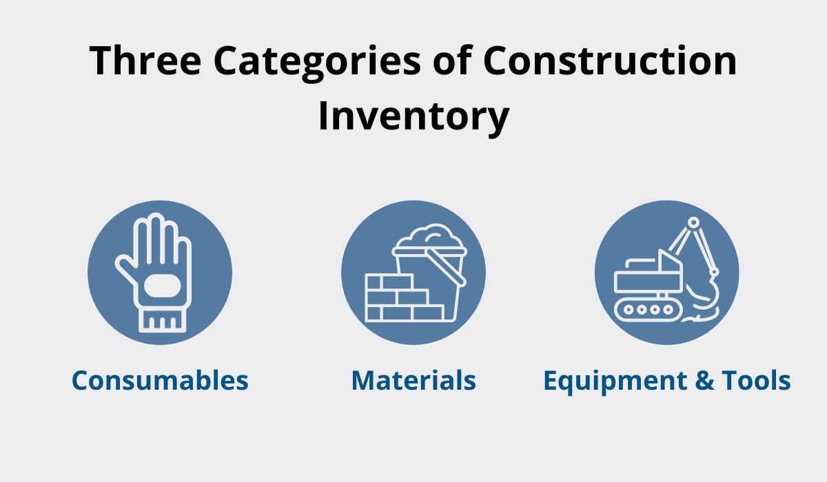 In construction, inventory is typically categorized into three main groups, which you can see illustrated below.
