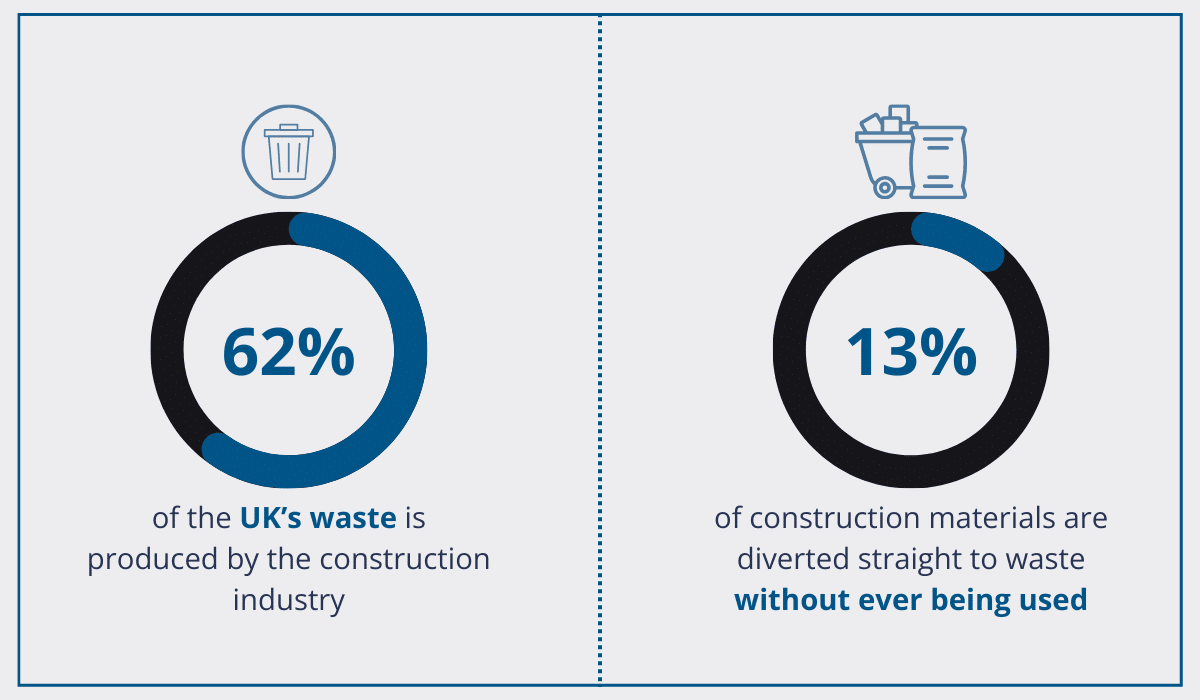 It reveals that construction waste constitutes 62% of the UK’s total waste, with a concerning 13% of it being discarded without ever being used.