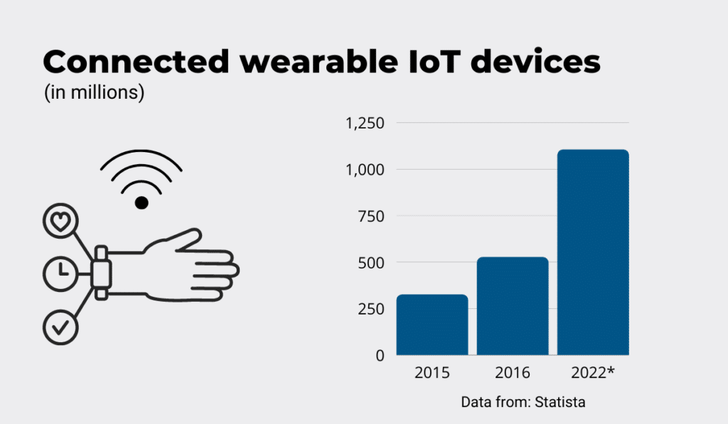It’s no wonder that the number is supposed to reach 1 billion in 2022. After all, wearable technology is simple to use and collects a lot of data about the person wearing it and their surroundings.
