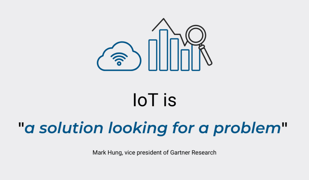 Mark Hung, the vice president of Gartner Research, called IoT “a solution looking for a problem.” This is because IoT provides so much data that companies simply don’t know what to do with all of it.