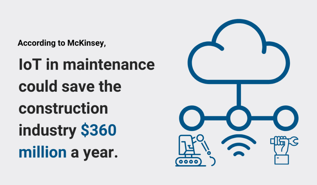 The McKinsey report also predicts that the value of IoT improvements to equipment maintenance could reach more than $360 billion a year. In other words, the construction industry could save that amount yearly if it relied on IoT for servicing.