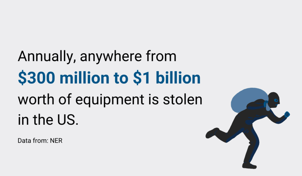 The National Equipment Register’s report on stolen equipment states that $300 million to $1 billion worth of equipment is stolen yearly from US construction sites. Most estimates land in the $400 million range, but that is still a lot of money to lose.