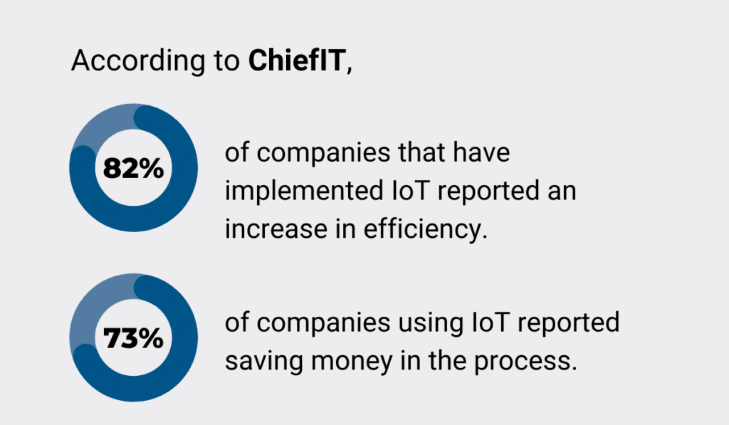 However, some businesses understood their productivity was lacking, so they implemented IoT solutions—and the strategy worked. 82% of such organizations reported improved efficiency, while 73% saved money.