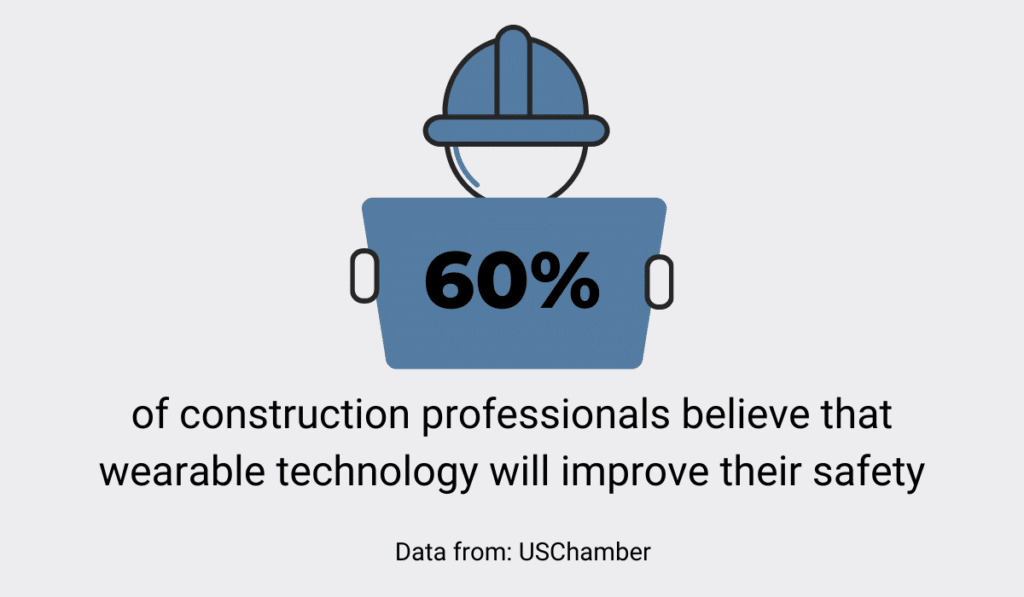 Interestingly, 60% of construction professionals believe wearable technology will help increase their safety. Since IoT provides complete job site visibility, it’s easy for companies to spot dangerous situations and react in time.