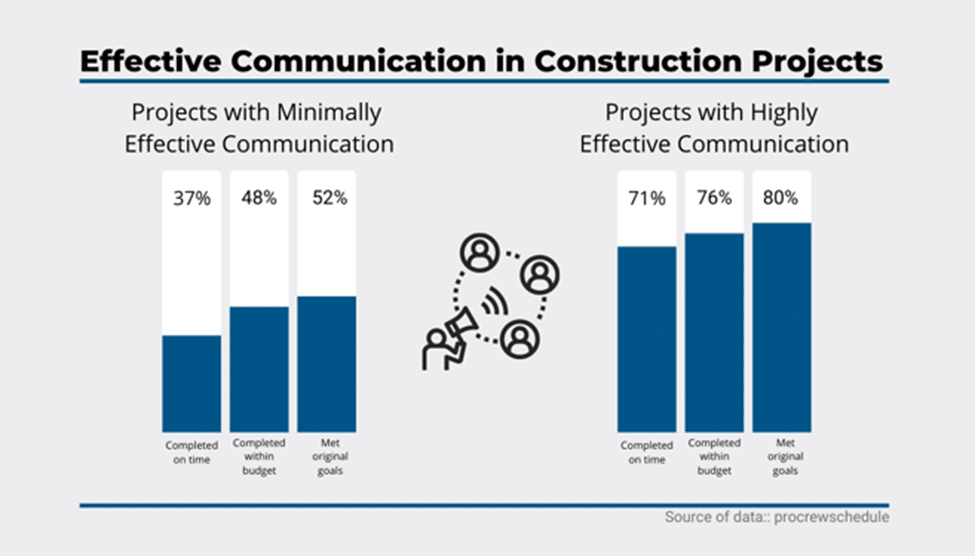 These statistics highlight the vast difference effective communication makes, minimizing all other risks, constraints, and issues inherent to construction projects.