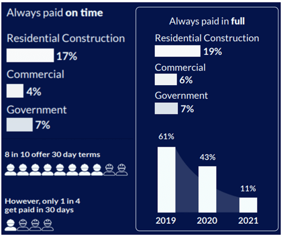 Further, only 11% of contractors reported always getting paid in full. When we compare this to 93% of fully paid contractors in 2019, the magnitude of the current crisis becomes apparent.